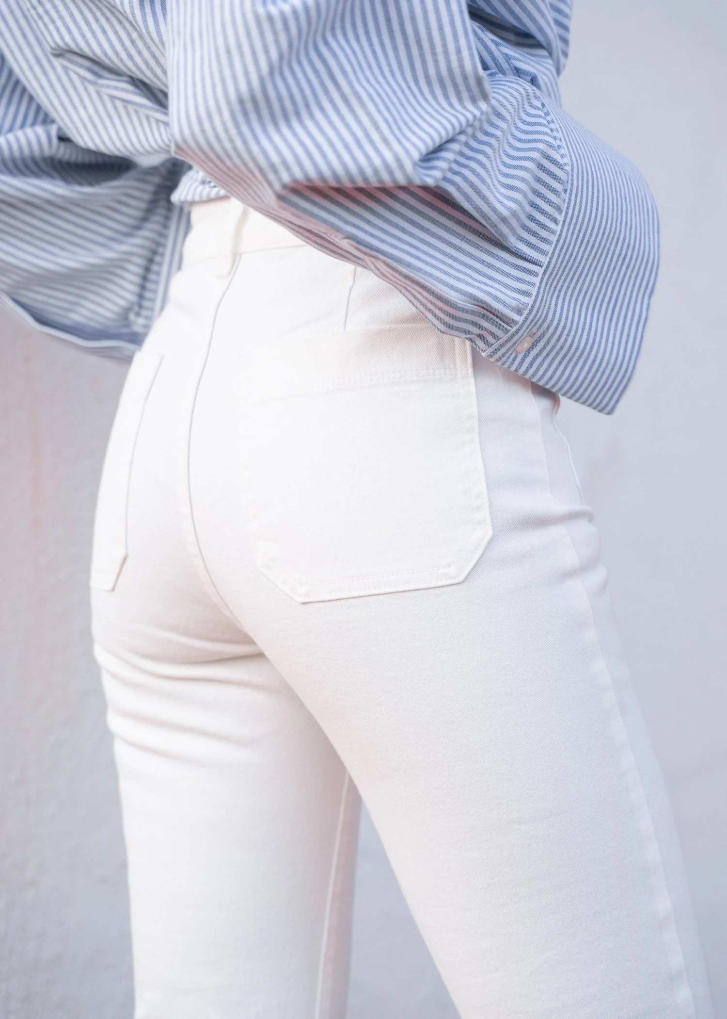 Le jean Francine est conçu en denim prenium ce qui assure un tombé parfait à cette coupe flare.