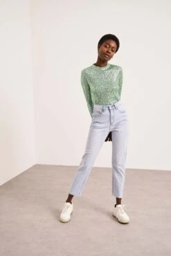 Le jean Marie est un jean coupe momfit, c’est à dire que c’est une coupe légèrement large au niveau des hanches qui se resserre au niveau des chevilles. C’est une coupe qui se réfère aux jeans que portaient les femmes dans les années 70/80.