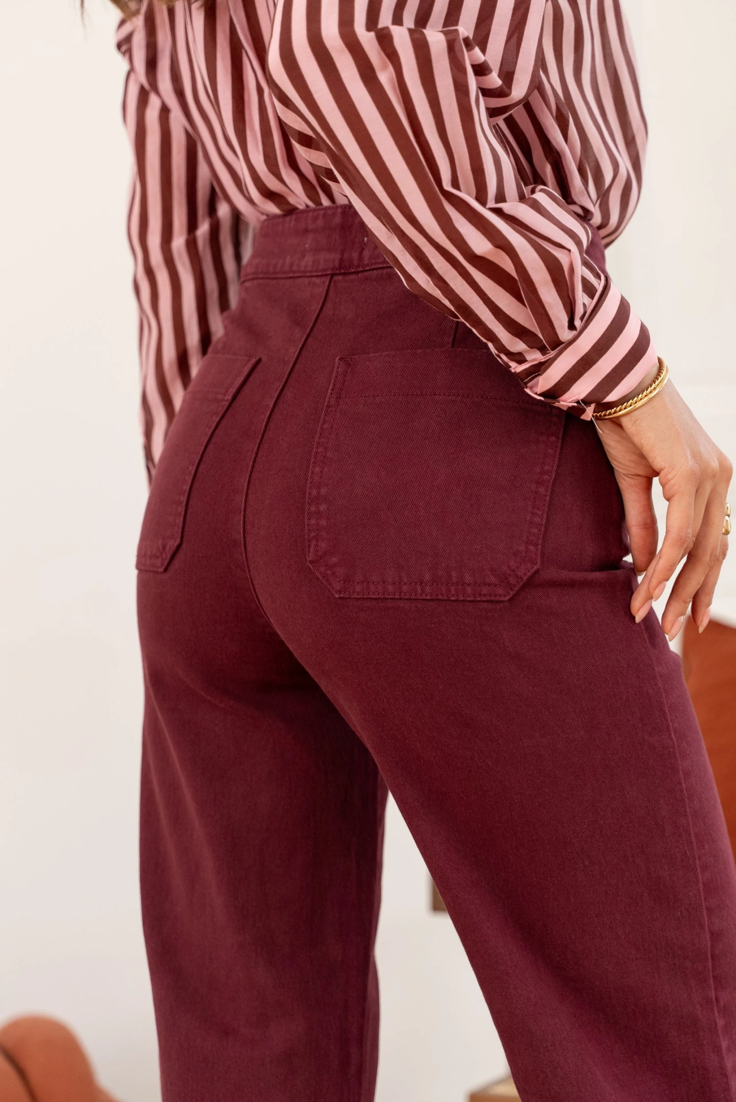 Découvrez l’élégance d’Oraije avec notre jean iconique : le jean Victorine. Le jean Victorine est un jean coupe wide, c’est à dire que c’est une coupe qui est cintrée au niveau de la taille puis qui s’évase des hanches jusqu’aux chevilles. C’est une coupe qui flatte la majorité des morphologies.