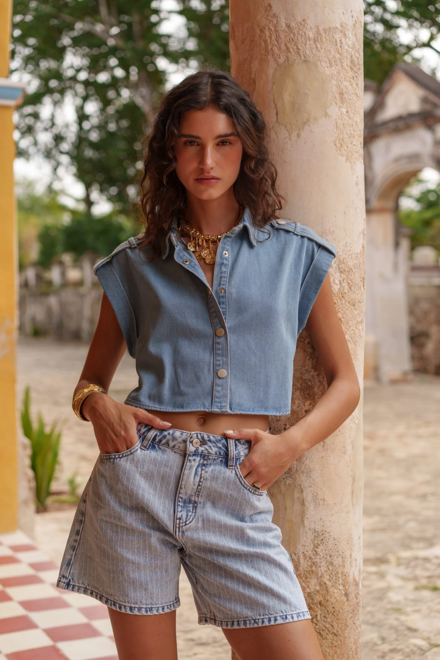Grâce au short Valmy en rayé bleu affirmez votre style. Sa taille haute de ce short mi-long à jambe large vous offre un confort et un style incomparables. Parfait pour vos journées estivales, il apportera une touche de sophistication à votre tenue.